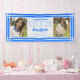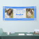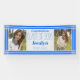 Hang this Blue Silver Geometric Two Photos Graduation Banner to celebrate your graduate. Personalise with two photos, name, school, and class year. This class of 2024 school colours banner features feminine font and a decorative silver and blue border.
