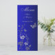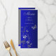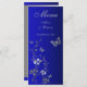 This royal blue and navy blue and silver grey menu card has silver butterflies and flowers on it that matches the wedding invitation shown below. It is designed on a rack card with a glossy front, and matte finish on the back. If you would like a menu card on linen invitation paper to match your invitations, or if you have any requests for additional items or changes, please email niteowlstudio@gmail.com with your request.
