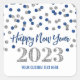 Custom new years 2023 stickers with silver and blue confetti pattern with modern lettered style text.
