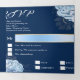 A beautiful all-in-one luxurious and glam design featuring a pretty blue rhinestone ball gown set against a dark blue background infused with delicate floral rose flowers and silver decorative corner edges. The bottom third has a tear off response card with personalised rsvp address and meal options for your guests to complete. These are ideal for a quinceanera; bridal shower; any age milestone birthday or a special event to celebrate woman. Personalise the wording; the background colour and add your own photo to make it unique.