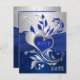 This romantic royal and navy blue and silver grey scrolled wedding reply card has a blue PRINTED ribbon and a silver and puffy looking blue joined hearts on it that matches the wedding invitations shown below. It would be perfect for a blue and silver themed wedding. It would also be very nice for a 25th wedding anniversary party too. ***PLEASE NOTE there is no raised elements on this invitation. Everything is printed flat. The text and paper is all customisable. It is shown here on lustrous metallic "ice" paper, which has a subtle metallic sparkle to it. I would NOT use any of the coloured papers (metallic champagne, gold, silver, felt, speckled) as they will ALL discolour the invitation. The linen paper will add a texture of thin lines that you may not want. The basic or recycled papers are a cheaper alternative if you are on a tighter budget. ***PLEASE NOTE that if you change the font or size of the font, it may alter how your invitation prints. It will print the way you see it on your monitor, so if you have alignment issues, or sizing problems, please contact me for help. I will not see your invitation once you order it, and Zazzle will NOT edit anything (typos, alignment, etc.). If you require assistance or would like any other matching items, please email your request to niteowlstudio@gmail.com. Existing matching items are shown below.