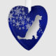 This pretty Christmas ornament will make a wonderful keepsake gift for any one who loves a Golden Retriever! It features a silver silhouette Golden Retriever image in front of a spray of ornate silver snowflakes. The image is placed on a gradient deep blue background. The back of the ornament has the same blue background and snowflakes, and a text field for you to customise.