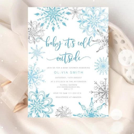 Blue silver snowflakes baby shower Invitation. "Baby it's cold outside" baby shower invitation.
