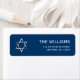 A classic Bar Mitzvah return address label featuring a Star of David design in silver and dark blue. Modern and formal. Designs are flat printed illustrations/graphics - NOT ACTUAL SILVER FOIL.