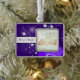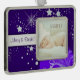 This is an elegant ornament for the Holiday Season, with the background image of a beautiful blue and silver swirl decorated Christmas bulb set against a silver star filled dark night sky. Your photograph takes centre stage, with your customised text in purple blue on a silver banner. Perfect for baby or family photographs.