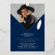 Graduation is a momentous occasion that deserves to be celebrated, and your special day deserves an invitation to match. Our blue and silver foil photo graduation party invitation will be sure to stand out from the competition. This sleek and modern invitation features a photo in the shape of a grad cap with the tassel, along with a simple text template that can be personalised with your graduate’s name and other details. The design is beautifully minimal and is sure to impress your graduating friends and family.