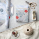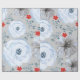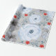 Blue silver watercolor floral wrapping paper featuring pretty boho wildflower meadow details with elegant watercolor boho wild flowers, perfect for holiday, spring, fall, autumn, or winter gift wrapping.