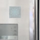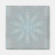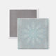Abstract painting of light blue stripes on a silver grey background with white highlights, modified in to a kaleidoscope design, printed on magnets.