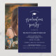 This graduation party invitation is perfect for the high school or college graduate looking for a blue simple and modern script invite with a full photo on the back. Personalise your with all grad party details, class of info and add a favourite graduation photo session portrait. Designed by Simple Desert Designs Studios for Zazzle. Message us for customisation of this or any of our designs to fit your needs.