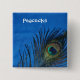 Blue Single Peacock Feather 15 Cm Square Badge