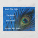 This peacock feather has a beautiful dark colour and a great way to let people know to save the date for your wedding. The blue background brings out the colours in the peacock feather eyes. Awesome save the date postcards.