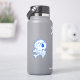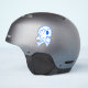 A vinyl decal with a blue skull and crossbone illustration with a heart shaped eyepatch.