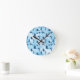 Images of yoga asanas. Custom wall clocks for people that love yoga. Blue sky background.
