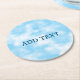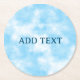 White clouds in blue sky. Custom paper coasters. Add name or text to personalise. Decor and gift idea.