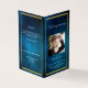 An elegant 4-page program. A blue sky as background, a faux gold frame and space for your photo. Personalise and add name, dates and your text.