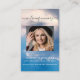 A dark blue sky as background, and space for your photo. Personalise and add name, dates and your text and prayer.
