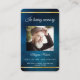 A dark blue sky as background, a faux gold frame and space for your photo. Personalise and add name, dates and your text and prayer.