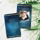 A dark blue sky as background, a faux gold frame and space for your photo. Light beams, behind the photo. Personalise and add name, dates and your text and prayer.