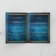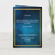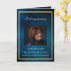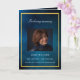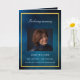 An elegant 4-page program. A dark blue sky as background, a faux gold frame, and space for your photo on the front. Personalise and add name, dates and your text. White text.