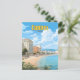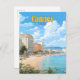 Blue Sky in Cannes France Art Vintage Travel Painting Postcard