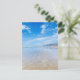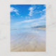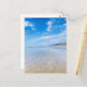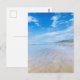 This postcard features a photograph of a beach in Oregon with a beautiful bright blue sky with clouds and the sky's reflection in the ocean.