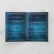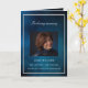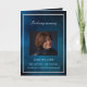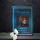 An elegant 4-page program. A dark blue sky as background, a faux silver frame, and space for your photo on the front. Personalise and add name, dates and your text. White text.