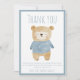 Express your gratitude with this adorable baby shower thank you card featuring a sweet bear illustration wearing a soft blue sweater. The minimal, pastel design is perfect for baby boys and features a heartfelt message with family name text. Ideal for sending appreciation to your guests for their thoughtful gifts and kind wishes.