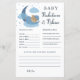 We're Over The Moon Theme Sleeping Baby Bear On A Blue Cloud With Blue Stars & Moon Baby Boy Shower Prediction and Advice Cards.