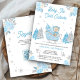 Amaze your guests with this elegant woodland theme winter baby shower invite featuring a cute blue sleigh and adorable teddy bear with blue pastel flowers with QR Code for gift registry. Simply add your event details on this easy-to-use template to make it a one-of-a-kind invitation.