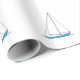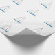 A repeating pattern of blue sloop sailboats with white sails decorate this sailing themed wrapping paper. Sloop sailboats have one mast and two sails, called "jib" and "mainsail".