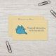 a cute cartoon graphic of a blue smiling kitty cat. Cute business card for pet related services such as pet sitting or pet care.