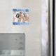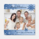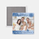 Merry Christmas photo magnet with stylish blue and white snowflake design, customisable with your own family photo, cute and fun to decorate your kitchen or as a gift for the holiday season, also available in matching cards, stamps and stickers.