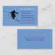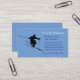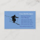 This card features a downhill skier in black silhouette, with white snow flying about him. The right side holds your easily customised business text in dark blue and white. The images and text are placed on a bright blue background. The back of the card is also blue, with an extra information field if you need it. Perfect for any business that is centred around snow skiing, winter sports or resorts, or just for fun! *Clip art used in this design is copyrighted by Encore Software, Inc., which permits use to its licensors. All rights reserved.
