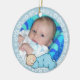 Baby's 1st Christmas customisable keepsake ornament with a sleeping baby boy in a blue sleeper and soft snowflake design. You can easily customise this ornament with baby's photo and add your own text to the back. It's great as a 1st Christmas gift and will be a memento for years to come.
