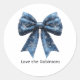 Blue Snowflake Bow Christmas Holiday Classic Round Sticker