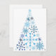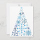 Christmas tree shape made of different sizes and styles of snowflakes. All are in shades of blue. Navy blue, sky blue, light blue, and slate blue.