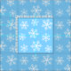 A pattern of simple snowflakes on light ice blue.
