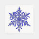 A blue and silver snowflake on a white background makes a lovely holiday Paper Cocktail Napkin.