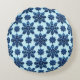 Blue Snowflake Patterned Background Round Cushion