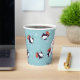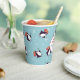 These are fun Christmas party paper cups that are appropriate for the Holiday Season and clear through the winter months. They feature a pattern of cute penguins wearing green and red striped caps and carrying candy canes. The pattern is placed on a blue background with white snowflakes scattered about. Your custom text is on a white banner; make it say whatever you'd like.