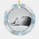 Commemorate you Christmas with this cute blue winter snowflake photo keepsake ornament. This ornament is fully customisable! You can edit the text and add your own photo by clicking "personalise this template". This personalised blue snowflake ornament features a silver glitter frame and snowflake. It has a place to add your name and the year as well as a photo on the back! There is a background pattern of icy blue, white, and silver glitter snowflakes. This personalised snowflake ornament is great for your newborn baby, baby's first Christmas, and for kids!