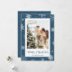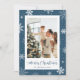 Blue snowflake photo Christmas card featuring snowflakes on a snowy blue background. Easily personalise this photo Christmas card with your photo and family name.