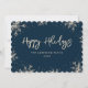 Blue Happy Holidays card featuring sparkling snowflakes. Easily personalise this minimalist, yet elegant holiday card with your text.