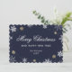 Elegant blue holiday card featuring a charming frame of falling snow, snowflakes and stars against a blue background. An elegant script font is used to add more festive look to this greeting card. Easily personalize this non photo holiday card online.