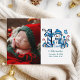 Celebrate your little one’s first holiday season with this cheerful winter design featuring a blue plaid number, adorable snowman, and scattered candy canes and gifts. Customise it with your baby's photo and birth details to create a keepsake that brings charm and magic to your holiday memories.