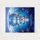 Blue Snowman Snowflakes Holiday Backdrop Tapestry