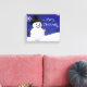 Adorn your walls with holiday cheer with this whimsical Blue Snowman Winter Scenery Christmas Stretched Canvas Print. Canvas Print design features a happy snowman in a snowy wintry scene against a royal blue background adorned with matching colour snowflakes. Additional gift and holiday items available with this design as well.