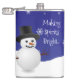Enjoy your favourite adult beverage with this festive Blue Snowman Winter Scene Christmas Flask. Flask design features a happy snowman in a snowy wintry scene against a royal blue background adorned with matching colour snowflakes and the saying "Making Spirits Bright" which you can leave or personalise with your own saying. Additional gift and holiday items available with this design as well.