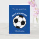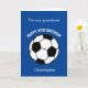 A blue soccer sport 10th birthday card for grandson, godson, son, etc who play soccer or are soccer fans. You can easily personalise the front of this blue sports birthday card with his name. The inside reads a birthday message, which you can easily edit as well. You can personalise the back of this soccer birthday card with the year. This would make a great birthday card keepsake for his 10th birthday.