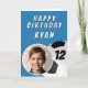 Blue Soccer Football Ball Photo Birthday Card. This design features classic soccer graphics, bold typography, and space for a personalised photo of the birthday child.